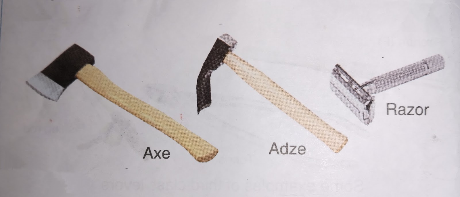 2. Shovel, axe and adze are examples of